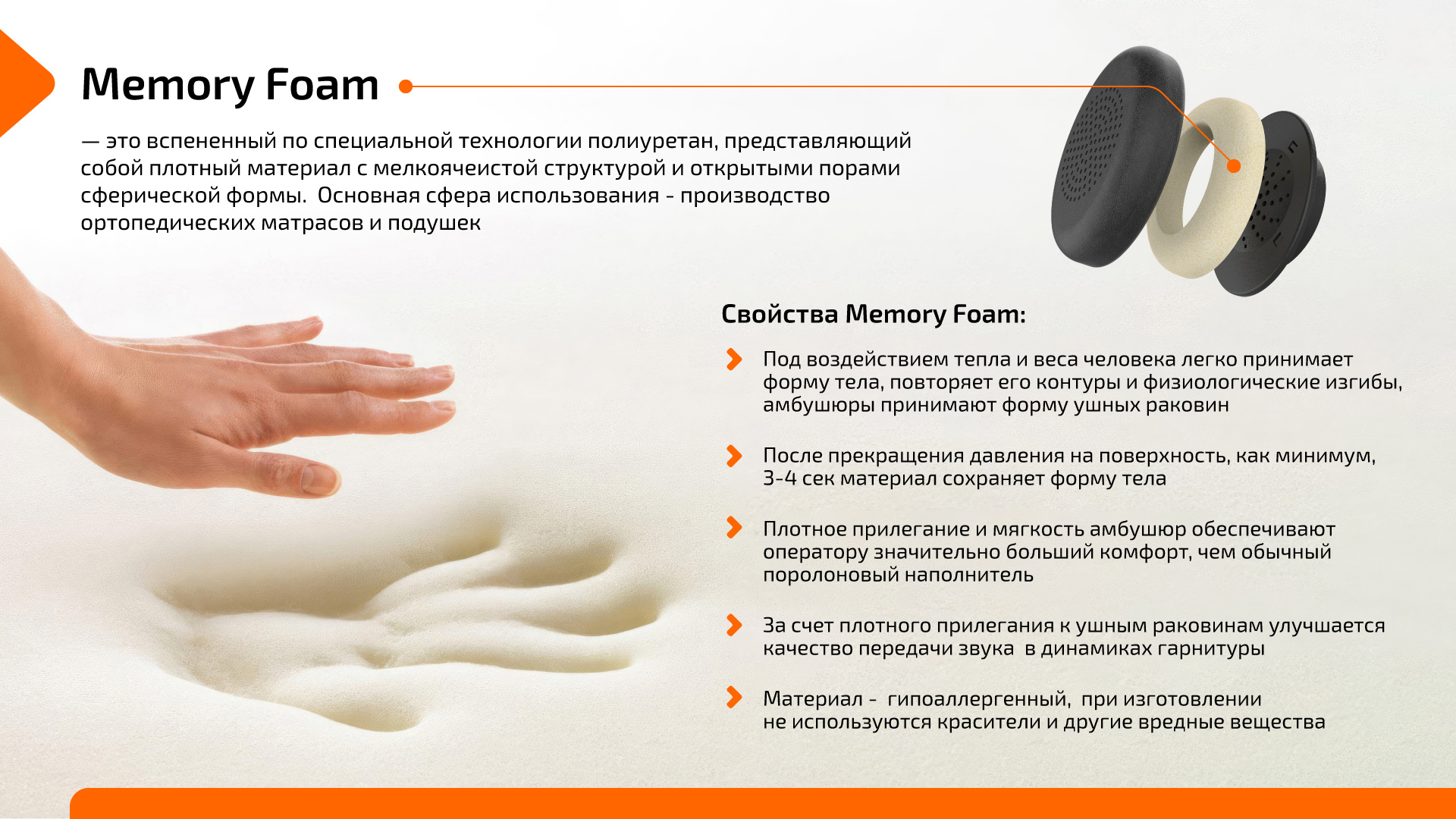 • Амбушюры из пеноматериала с эффектом памяти