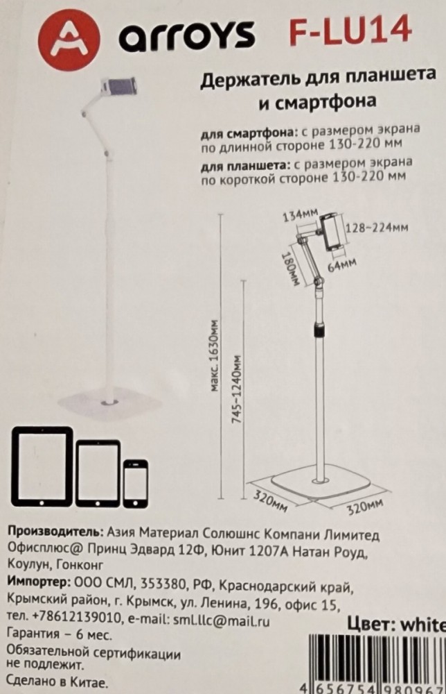 подставка напольная для планшета Arroys F-LU14 black