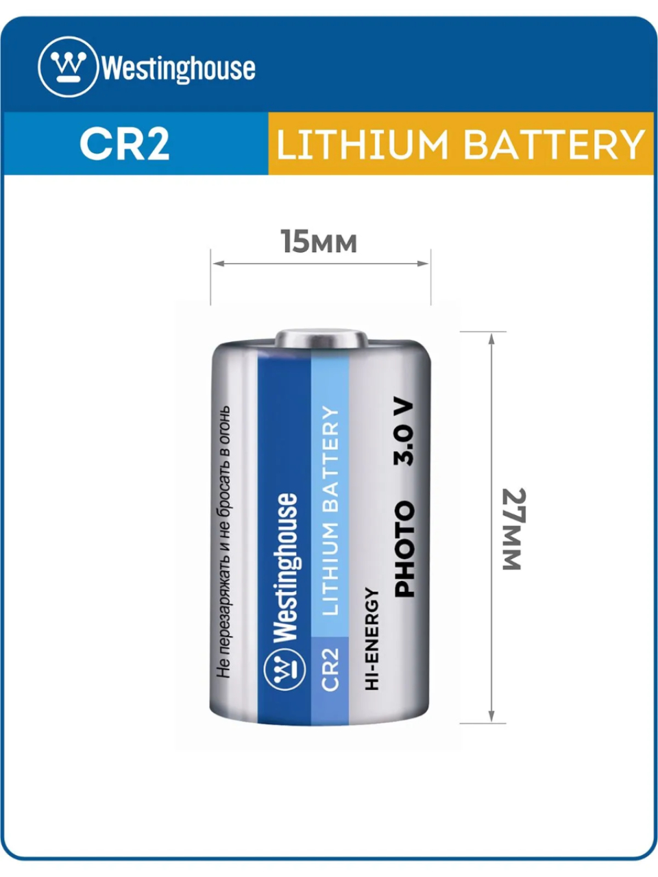Батарейка CR2 Westinghouse предназначена только для одноразового использования, пожалуйста, не заряжайте её